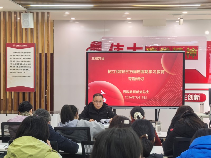 会上,汪沺沺带领与会人员重温了习近平总书记“3·18”重要讲话精神。习近平新时代中国特色社会主义思想概论教研室主任俞恩勤结合围绕“树立和践行正确政绩观,做‘六要’思政理论课教师”展开主旨交流。他提出:思政课教师的政绩观就是实实在在把课讲好,把学生教好。要学会把道理讲深、讲透、讲活,切实提升思政课的思想性、理论性和亲和力、针对性。思政教研部新进教师代表刘璐璐也就思政课教师的政绩观的思考、教学困惑和解决思路等分享了自己的想法。